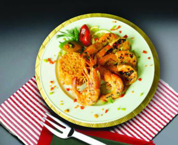 3. تفرم الكزبرة ويضاف إليها الملح والفلفل، وتحشى بواسطتها حبات الروبيان، ثم تشوى حتى النضوج الكامل. ثم، تسكب فوقها صلصة الليمون التي تعدّ عبر مزج عصير حبة ونصف من الحامض مع ملعقة من الزيت.