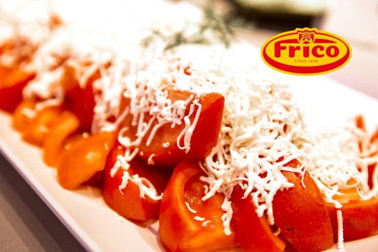 2. وزعي الجبن الموزريلا فوق الطماطم.